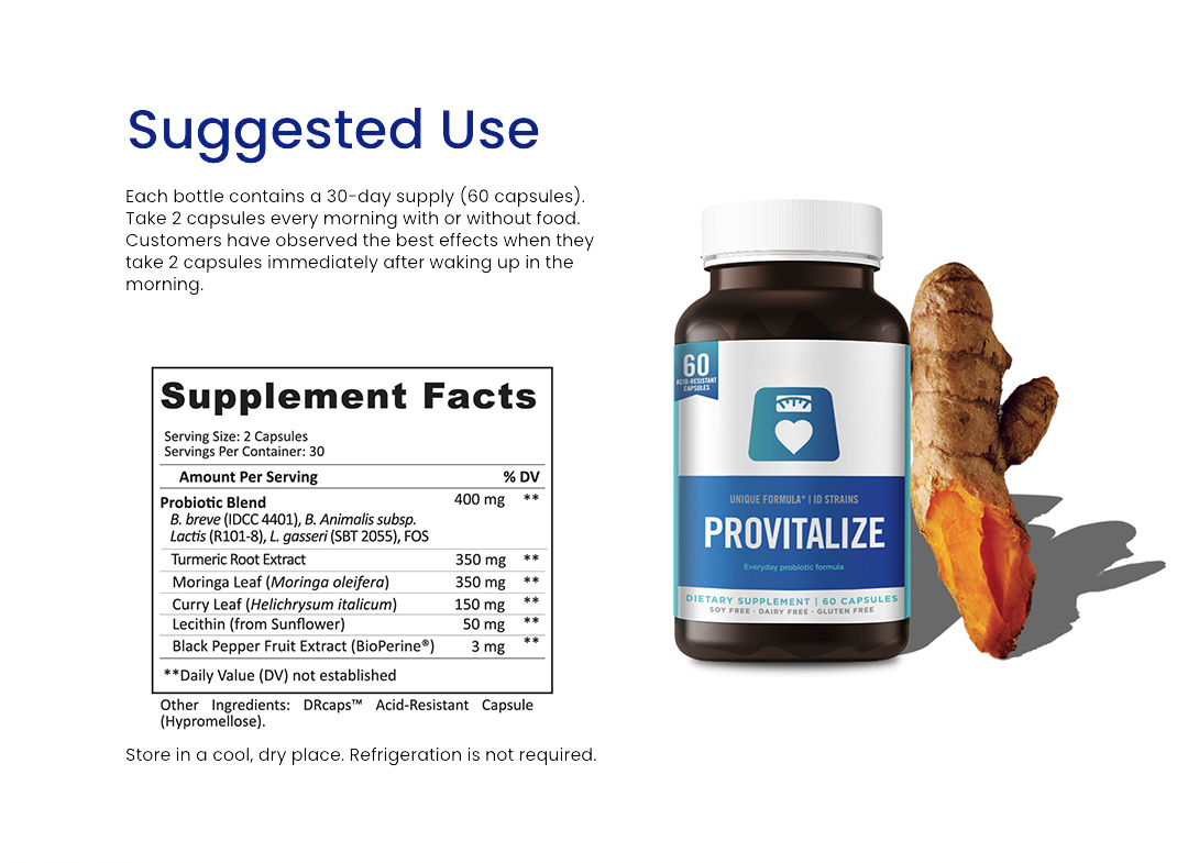 Probiotics That Support Healthy Abdominal Fat Management - These probiotic strains will begin to colonize as the capsules reach the gut. Women may notice their clothes feel looser as the weeks go by. Provitalize also uses the trademarked Delayed-Release Capsule, a specially coated capsule to protect the probiotics from stomach acid, so that they can remain fully intact until it reaches the gut and be effectively absorbed.